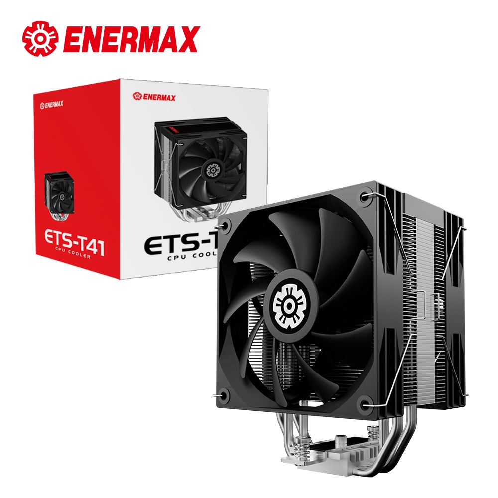 ETS-T41 空冷式CPU散熱器配備4根Ø6 mm熱導管與2顆120mm FDB風扇,提供最高達250W TDP的強大散熱效能。PWM 智慧控制正反葉雙風扇以航空渦輪為靈感,後置風扇搭配特製的反葉設計,減少空氣擾流,優化整體風流與噪音表現。