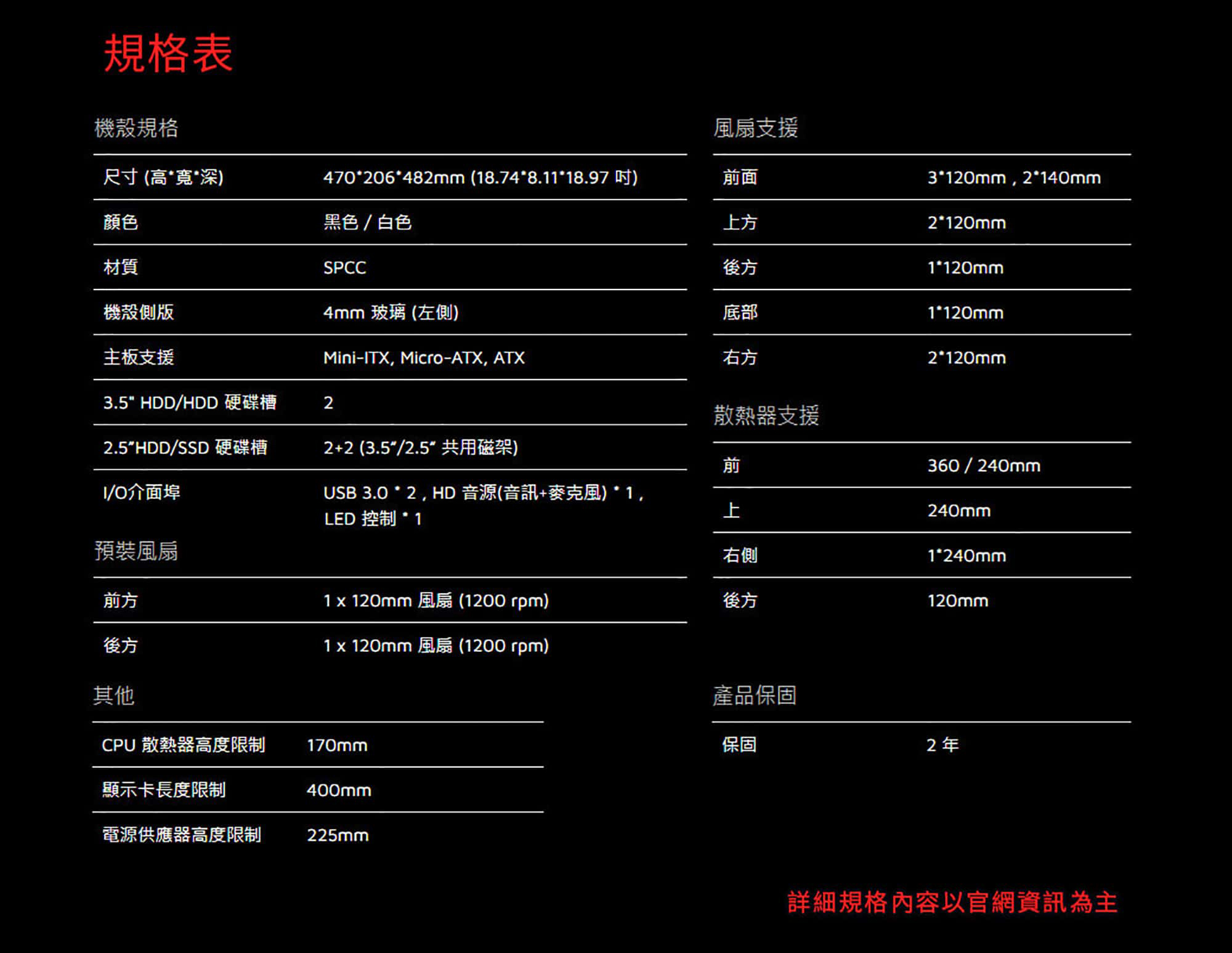 - 內建前後12cm風扇各1,可有效提高散熱效率