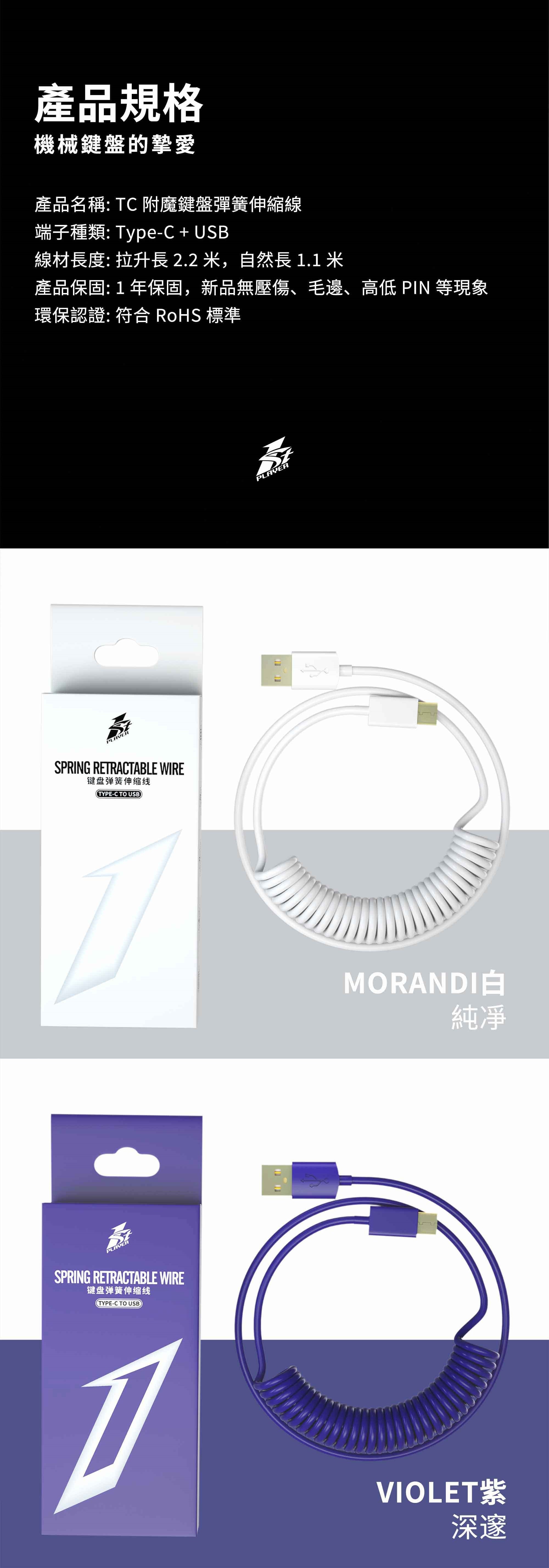 TC(G) 附魔鍵盤彈簧伸縮線 (紫)