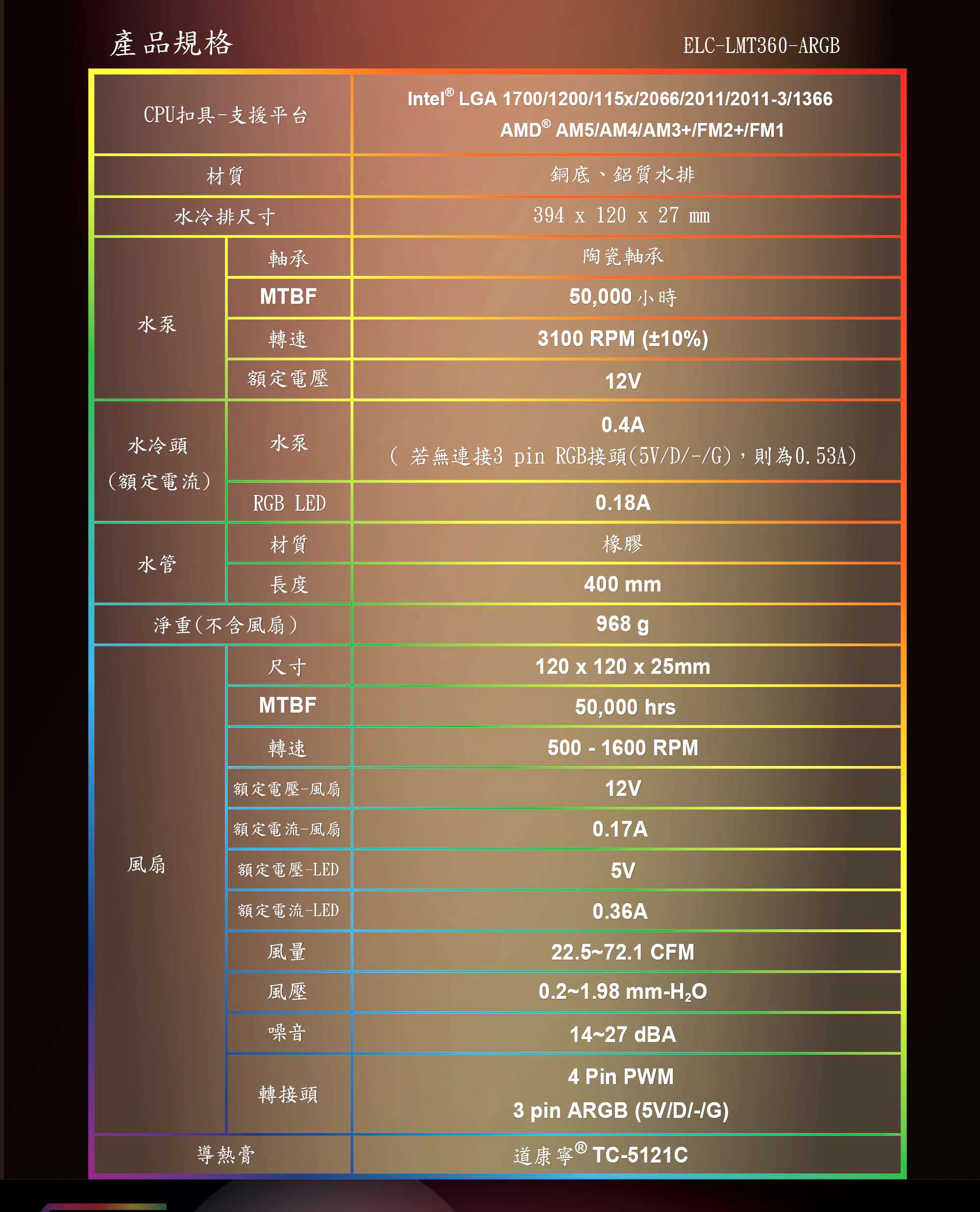 虹彩晶凌 LIQMAX III 240 ARGB CPU水冷散熱器