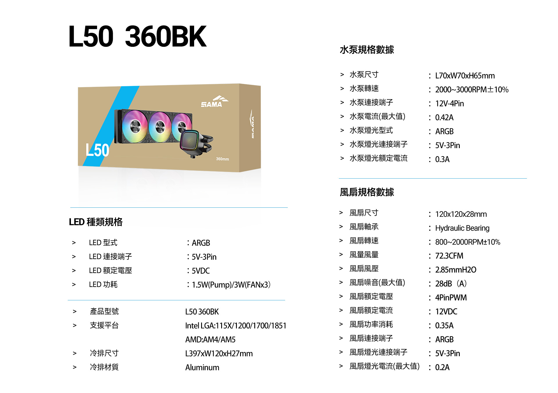 SAMA 先馬 L50 360 BK
