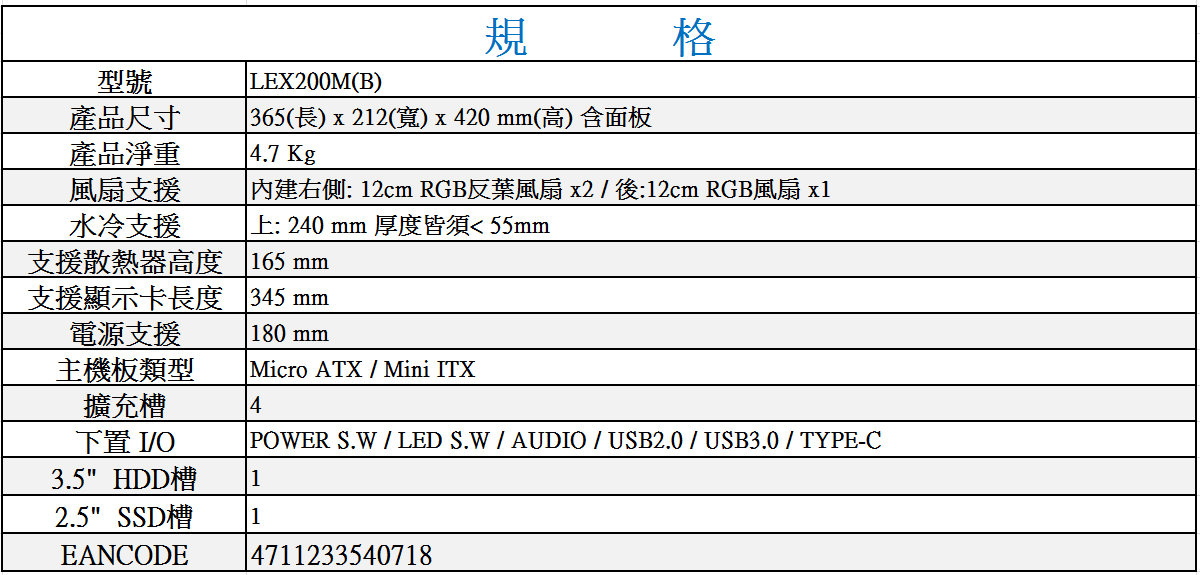 附右側12cm RGB 反葉風扇 x2 ,後置12cm RGB 風扇 x1
