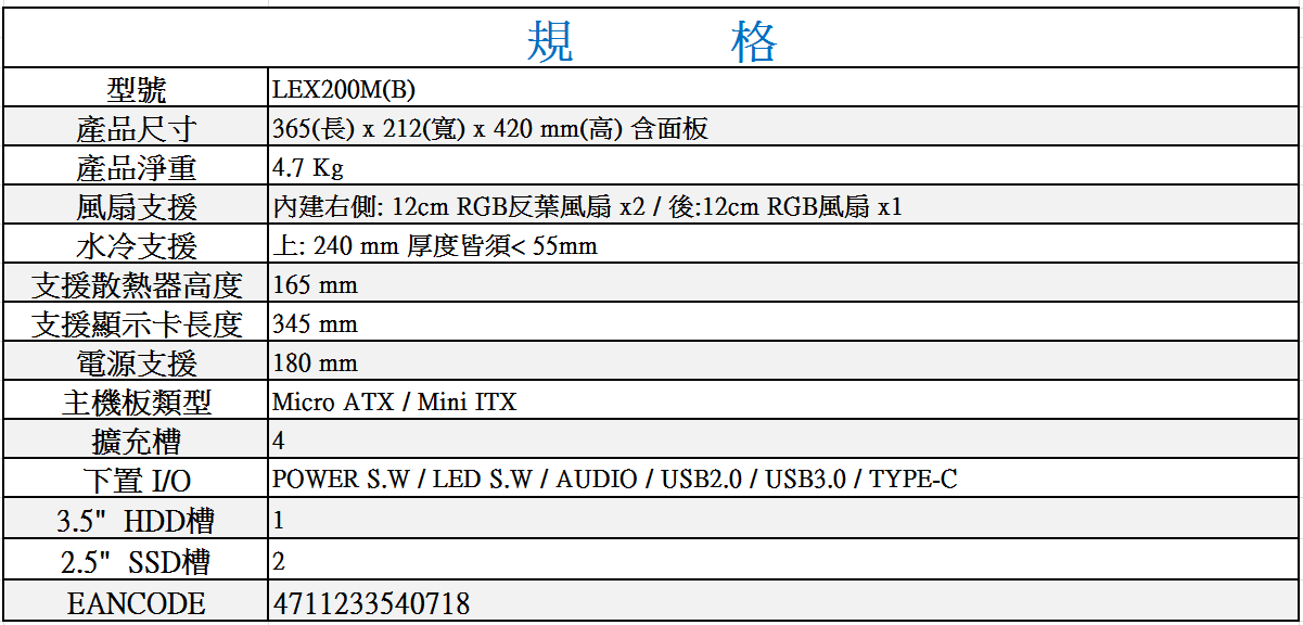 內建後置12cm RGB 風扇 x1