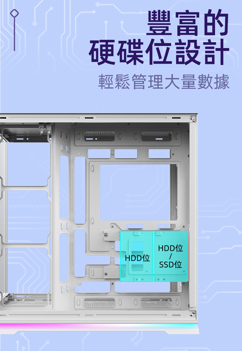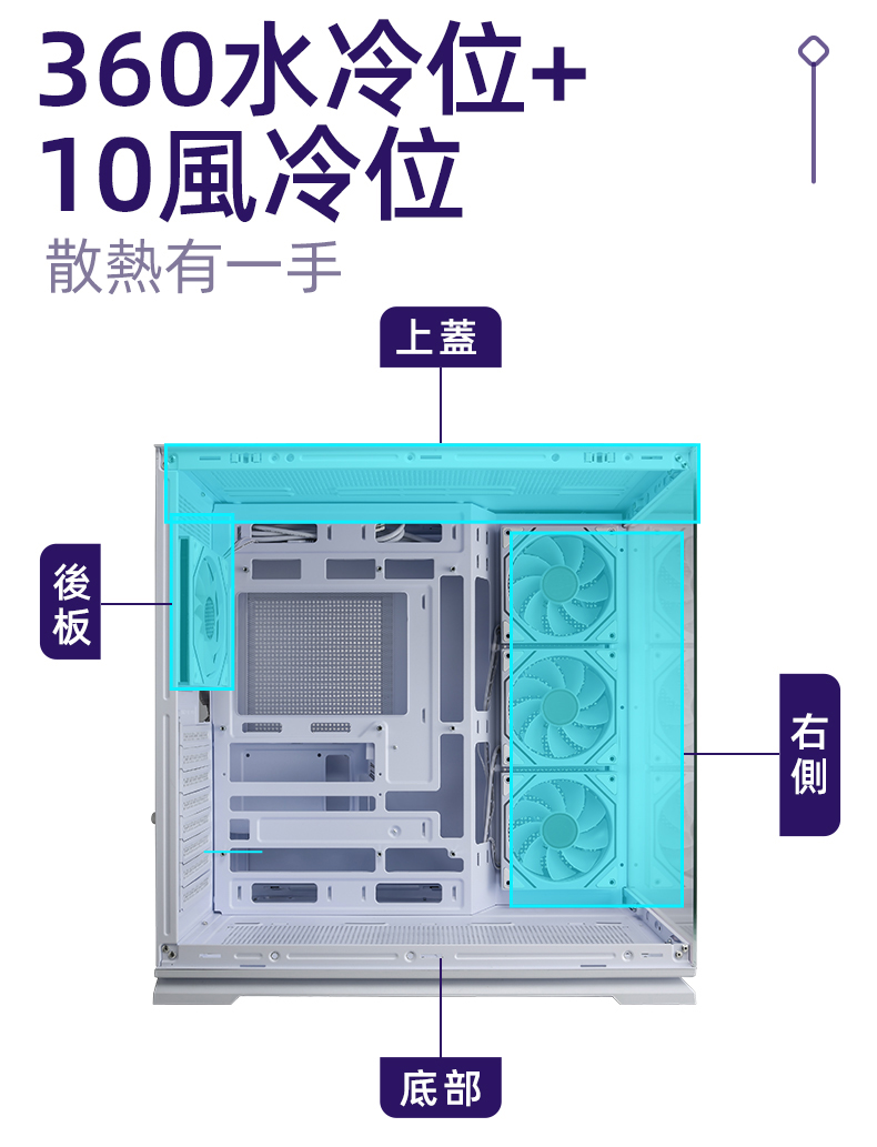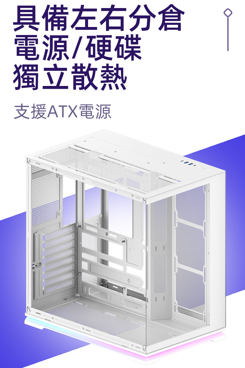 左右分艙設計, 提供獨立散熱風道與理線空間