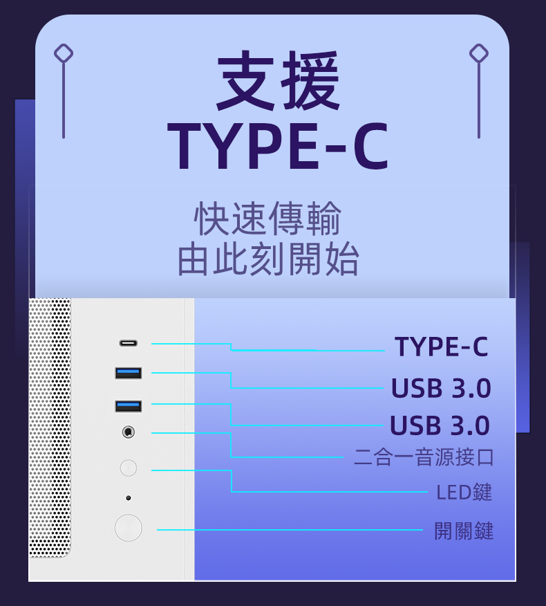 USB3.0 x2 / 高速TYPE-C Gen2 20Gbps 連接埠